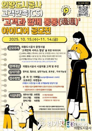 [경기핫타임뉴스=김삼영 기자] 의왕도시공사는 고객만족(CS) 아이디어 공모전‘고객과 함께 통통(通通)’을 추진한다고 밝혔다.