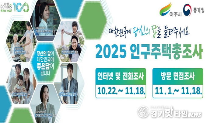 [경기핫타임뉴스=김형철 기자] 여주시는 오는 10월 22일부터 11월 18일까지 '2025 인구주택총조사'를 실시한다고 밝혔다.