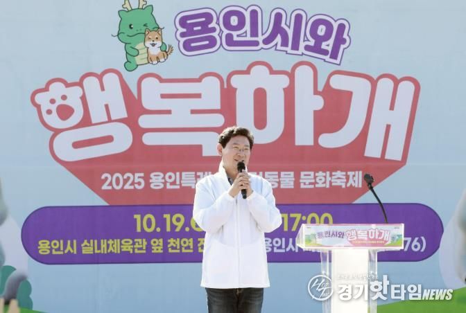 [경기핫타임뉴스=김삼영 기자] 이상일 용인특례시장은 19일 처인구 마평동의 ‘SERI PAK with 용인’ 앞 천연잔디광장에서 열린 ‘2025 용인시와 행복하개’ 축제에 참석해 반려동물 가족과 함께 소통하는 시간을 가졌다.