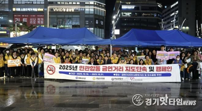 [경기핫타임뉴스=김형철 기자] 하남시는 10월 17일 오후 7시부터 9시까지 미사문화거리와 미사호수공원 일대에서 민·관 합동 금연거리 지도단속 및 금연캠페인을 실시했다. 이번 행사는 금연거리의 실효성을 높이고 시민의 건강권을 보호하기 위해 추진됐다.
