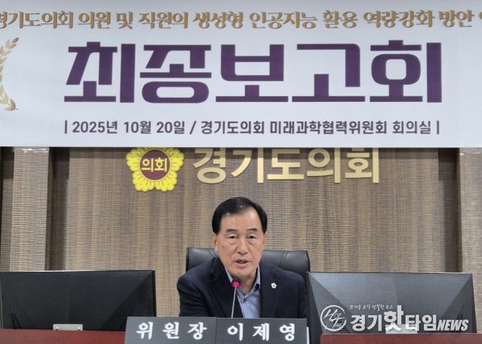 [경기핫타임뉴스=김삼영 기자] 경기도의회 미래과학협력위원회는 10월 20일, 도의회 위원회 회의실에서 『경기도의회 의원 및 직원의 생성형 인공지능 활용 역량강화 방안 연구』에 대한 최종보고회를 개최했다.