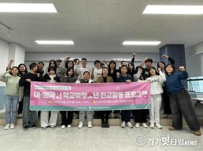 [경기핫타임뉴스=김삼영 기자] 안성시학교밖청소년지원센터는 지난 10월 20일 안성공익활동지원센터 가치마당·가치누리에서 내·외국인 학교 밖 청소년이 함께 참여한 친교활동 프로그램을 성황리에 마무리했다.
