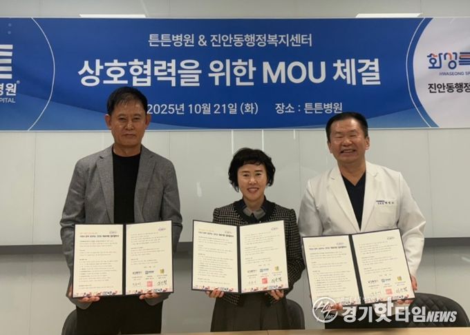 [경기핫타임뉴스=김삼영 기자] 화성특례시 진안동과 진안동 주민자치회가 21일 튼튼병원(원장 박진수)과 함께 지역 내 저소득층 및 취약계층의 건강 증진을 위한 의료지원 업무협약을 체결했다.