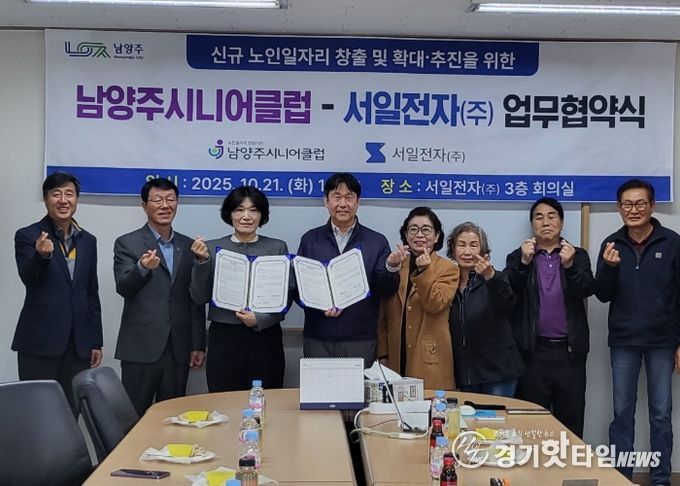 [경기핫타임뉴스=김형철 기자] 남양주시는 21일 노인 일자리 전담기관 남양주시니어클럽이 진건읍 진관산업단지 내 서일전자(주)와 노인 일자리 공동체사업단 운영을 위한 업무협약을 체결했다고 밝혔다.