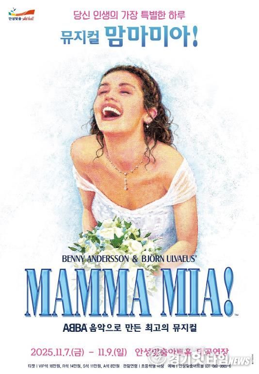 [경기핫타임뉴스=김삼영 기자] 안성맞춤아트홀은 오는 11월 7일부터 9일까지 대공연장에서 세계적인 히트 뮤지컬 '맘마미아!'를 무대에 올린다. 세대를 초월한 명곡과 유쾌한 스토리로 사랑받아온 이번 작품은 남녀노소 누구나 즐길 수 있는 최고의 힐링 뮤지컬이다.