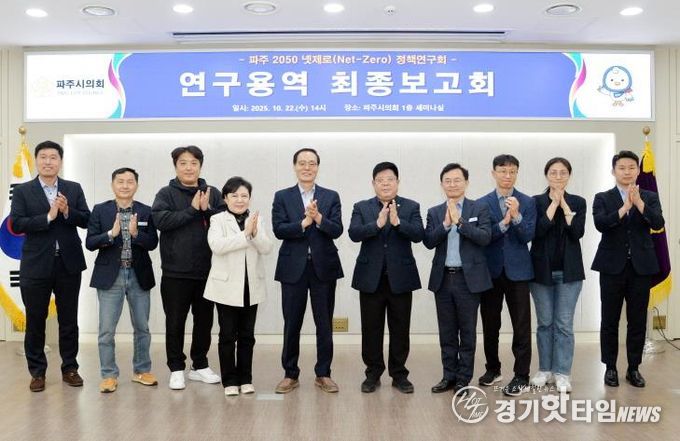 [경기핫타임뉴스=김형철 기자] 파주시의회 의원연구단체인“파주 2050 넷제로 정책연구회”는 지난 22일 '파주 2050 넷제로(탄소중립) 정책 수립을 위한 기초 연구용역'최종보고회를 개최했다.