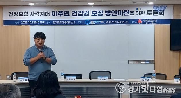 [경기핫타임뉴스=김삼영 기자] 경기도의회 여성가족평생교육위원회 유호준 의원(남양주 다산·양정)은 10월 22일 오후 3시, 경기도의회 중회의실에서 열린 '건강보험 사각지대 이주민 건강권 보장 방안 마련을 위한 토론회'를 공동주최하며, 미등록 이주민의 건강권 보장을 위한 공공의 책임 강화 필요성을 강조했다.