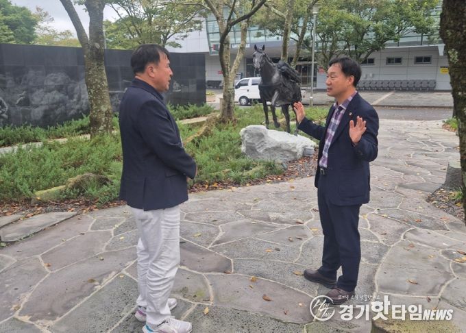 [경기핫타임뉴스=김삼영 기자] 경기도의회 농정해양위원회 부위원장 윤종영 의원(국민의힘, 연천)은 10월 22일 한국마사회 제주본부를 방문해 군마 ‘레클리스’ 기념행사의 의미를 공유하고, 경기도와 제주특별자치도, 한국마사회 간 협력 방안을 논의했다.