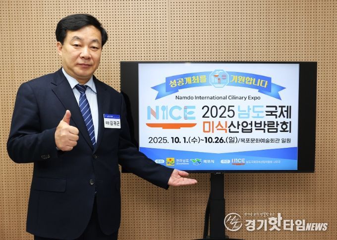 [경기핫타임뉴스=김삼영 기자] 김귀근 군포시의회 의장이 ‘2025 남도국제미식산업박람회’의 성공 개최를 기원했다. 부천시의회 김병전 의장의 지목으로 이번 박람회 성공을 응원하는 릴레이 챌린지에 참여한 것이다.
