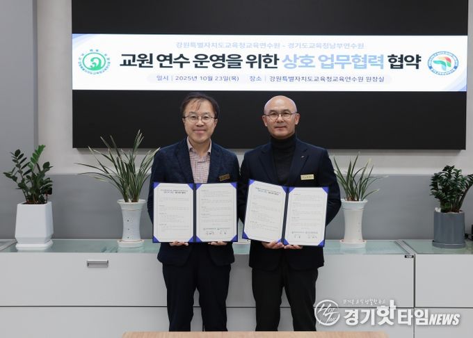 [경기핫타임뉴스=김삼영 기자] 경기도교육청남부연수원이 23일 강원특별자치도교육청교육연수원과 교원 연수 협력을 위한 업무협약(MOU)을 체결했다.