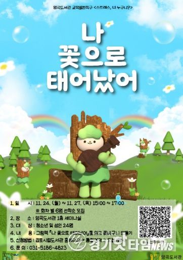 [경기핫타임뉴스=김형철 기자] 김포시 양곡도서관이 오는 11월 24일부터 11월 27일까지 청소년 및 성인을 대상으로 그림책과 원예 심리 치료를 결합한 프로그램 '나, 꽃으로 태어났어'를 운영한다.