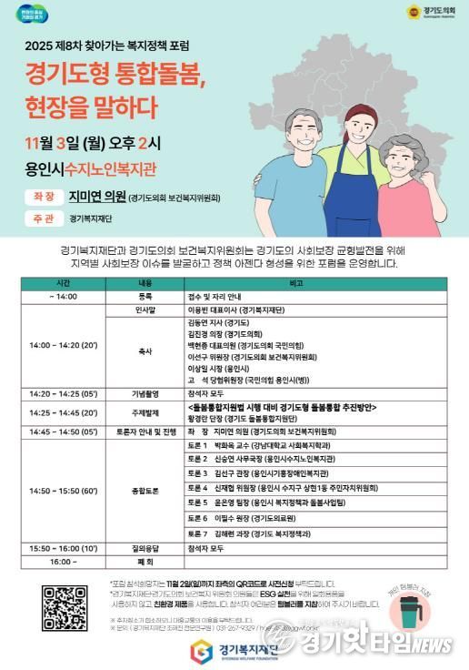 이번 포럼은 경기도의회와 경기복지재단이 공동 주최하고, 경기복지재단이 주관하는 ‘2025 찾아가는 복지정책 포럼’의 일환으로, 2026년 3월 시행을 앞둔 '의료·요양 등 지역 돌봄의 통합지원에 관한 법률'에 대응하기 위한 '경기도형 통합돌봄 모델’의 발전 방향을 모색하기 위해 마련됐다.