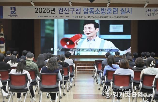 [경기핫타임뉴스=김삼영 기자] 수원시 권선구는 지난 28일 수원남부소방서(서둔119안전센터)와 권선구 직원들과 함께 공공기관 합동소방훈련을 실시했다.