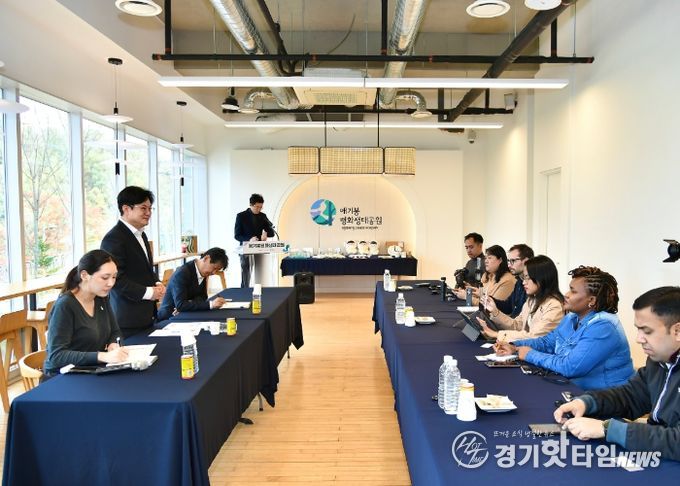 김포시는 지난 31일 김병수 김포시장이 남아공과 헝가리, 체코, 튀르키예, 필리핀, 인도, 태국 등 7개국 대표 외신들과 애기봉평화생태공원과 접경지 안보관광을 주제로 인터뷰를 진행했다고 밝혔다.