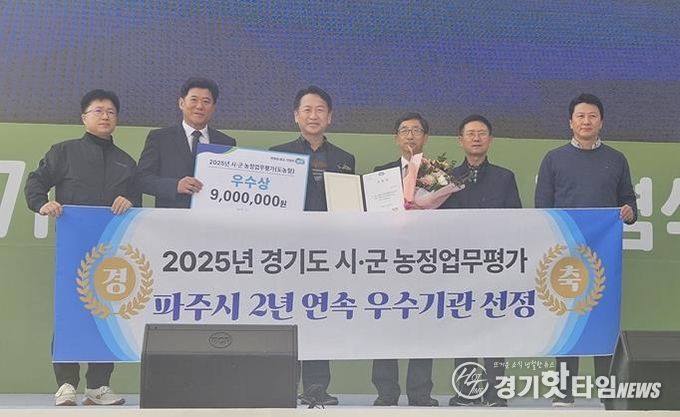 [경기핫타임뉴스=김형철 기자] 파주시는 지난 7일 수원시 국립농업박물관에서 열린 ‘제30회 경기도 농업인의 날 기념식’에서 녩년 경기도 시군 농정업무평가’2년 연속 우수기관으로 선정됐다고 밝혔다.
