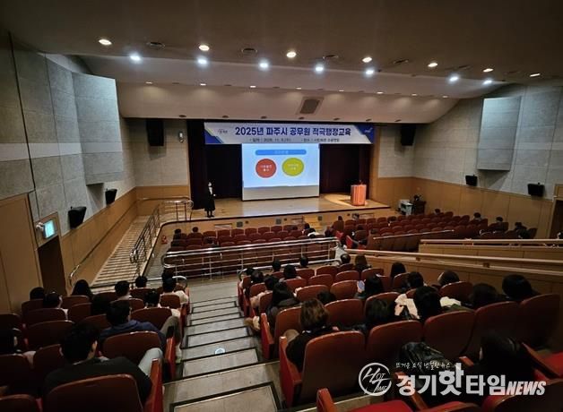 [경기핫타임뉴스=김형철 기자] 파주시는 지난 5일 시민회관 소공연장에서 적극행정 문화 확산과 공직자의 역량 강화를 위해 1,000여 명의 직원과 지방공공기관 직원을 대상으로 녩년 파주시 공무원 적극행정 교육’을 실시했다고 밝혔다.