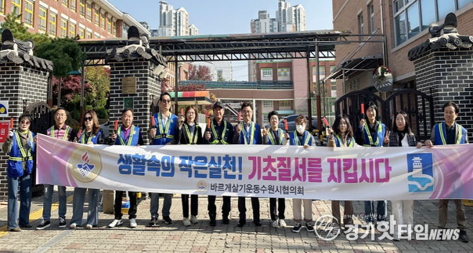[경기핫타임뉴스=김삼영 기자] 수원시 영통구 바르게살기운동협의회는 지난 11월 7일, 매탄동 산남초등학교 앞에서 ‘기초질서 확립 캠페인’을 실시했다. 이는 일상 속에서 질서와 배려를 실천하는 시민 문화를 조성하고, 더불어 깨끗하고 안전한 생활환경을 만들어가기 위한 취지다.