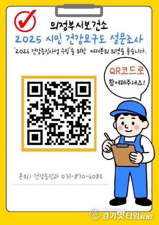 [경기핫타임뉴스=김형철 기자] 의정부시 보건소는 2026년 건강증진사업 계획수립을 위해 지역 주민을 대상으로 보건의료 전반에 관한 주민 요구도 조사를 12월 7일까지 진행한다.