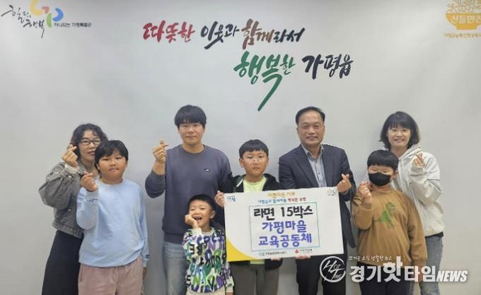 [경기핫타임뉴스=김형철 기자] 가평군 가평마을교육공동체는 최근 가평읍 행정복지센터를 방문해 이웃돕기 성품으로 라면 15박스를 전달했다. 이번 성품은 ‘가마공 벼룩시장’에서 아이들이 팀을 이루어 직접 물건을 준비하고 판매에 참여해 얻은 수익금으로 준비한 것이다.