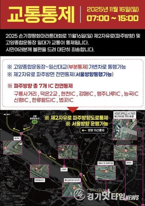 [경기핫타임뉴스=김형철 기자] 고양특례시는 오는 16일(일) ‘2025. 손기정평화마라톤대회’ 개최에 따라 고양시 주요 도로 교통통제에 시민들의 적극적인 협조를 당부했다.
