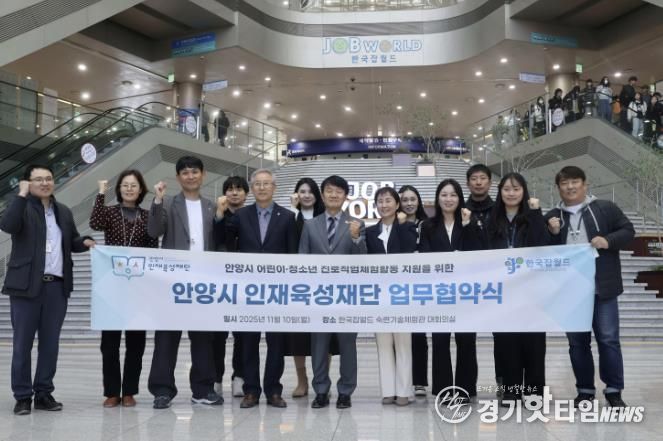 [경기핫타임뉴스=김삼영 기자] 안양시 인재육성재단은 10일 한국잡월드 숙련기술체험관 대회의실에서 직업진로체험 대표기관인 한국잡월드와 업무협약을 체결했다고 11일 밝혔다. 이번 협약은 안양시 어린이·청소년의 다양한 진로·직업체험 및 교육지원을 위해 양 기관이 상호협력을 강화하고자 추진됐다.
