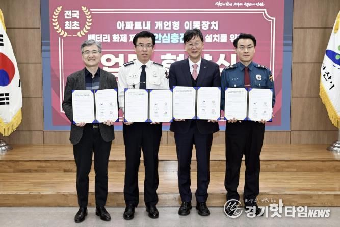 [경기핫타임뉴스=김삼영 기자] 안산시는 지난 10일 안산시청 제1회의실에서 안산소방서 등 4개 기관과 아파트단지 내 개인형 이동장치(PM : Personal Mobility) 배터리 ‘안심 충전소’ 설치를 위한 업무협약(MOU)을 체결했다고 11일 밝혔다.