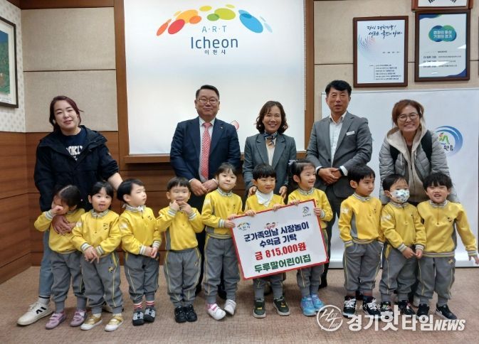 [경기핫타임뉴스=김형철 기자] 이천시 장호원읍 두루말어린이집은 11월 11일, 어린이들과 함께 장호원읍행정복지센터에 방문해 군가족의 날 아나바다 시장놀이 행사의 수익금 815,000원을 전달했다.