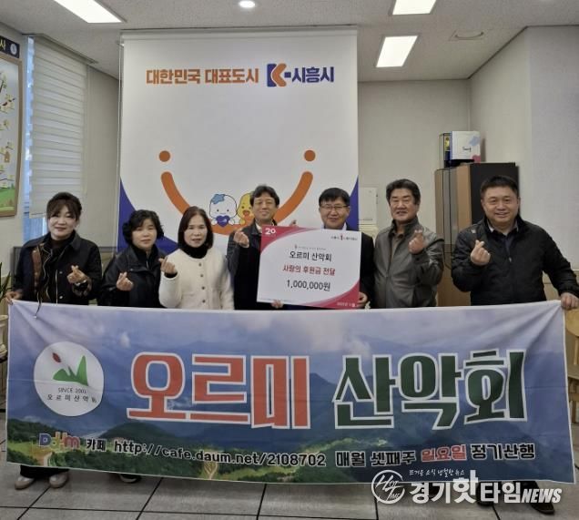 [경기핫타임뉴스=김삼영 기자] 시흥시 매화동 오르미 산악회는 지난 11월 10일 매화동 행정복지센터를 방문해 지역 내 저소득 취약계층을 위한 후원금 100만 원을 전달했다.