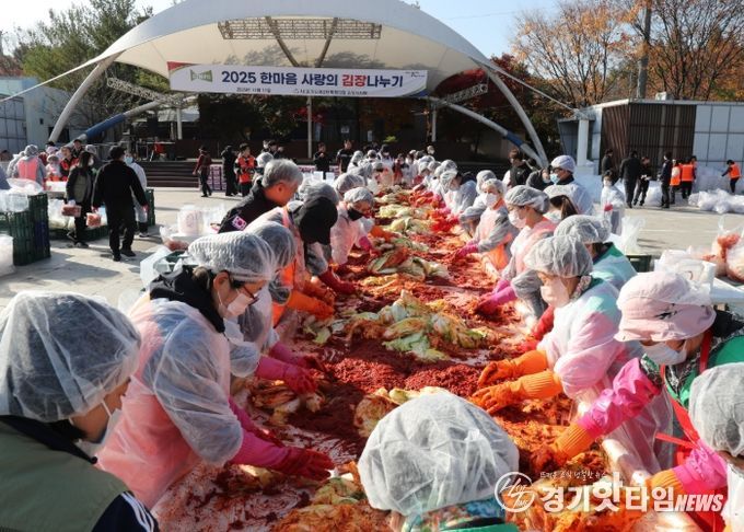[경기핫타임뉴스=김형철 기자] (사)경기도여성단체협의회 김포시지회가 지난 11일 사우문화체육광장에서 ‘한마음 사랑의 김장나누기’ 행사를 성황리에 개최했다. 행사에 격려하기 위해 참석한 김병수 김포시장은 직접 배추를 버무리며 이웃사랑 실천에 동참하고, 이웃돕기를 위해 헌신하는 여성단체 회원들과 자원봉사자들에게 감사의 뜻을 전했다.