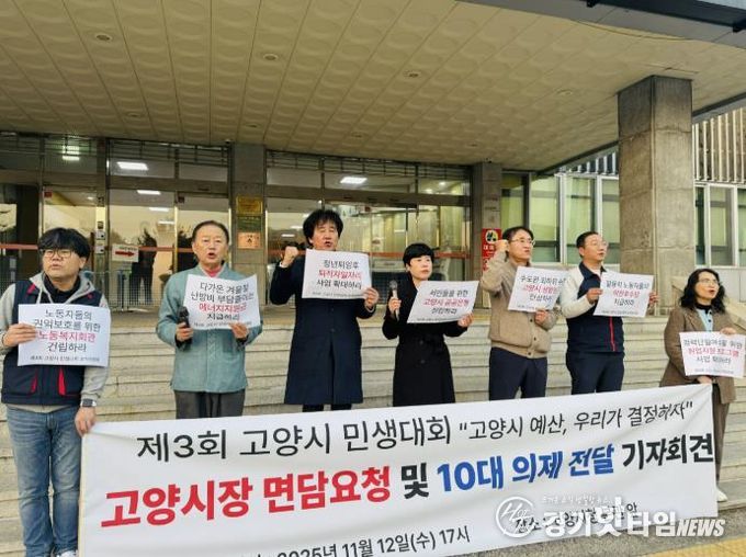 [경기핫타임뉴스=김형철 기자] 제3회 민생대회 조직위원회는 11월 12일 기자회견을 갖고 고양시민 5,225명의 목소리가 담긴 10대 의제를 이동환 고양시장에게 전달했다.