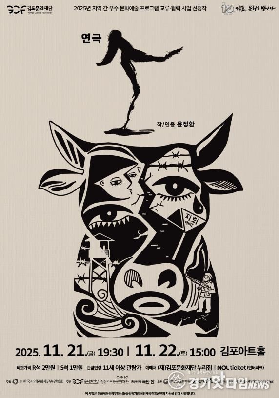 [경기핫타임뉴스=김형철 기자] (재)김포문화재단은 오는 11월 21일부터 22일까지 이틀동안 김포아트홀에서 연극 '소' 공연을 개최한다고 밝혔다.