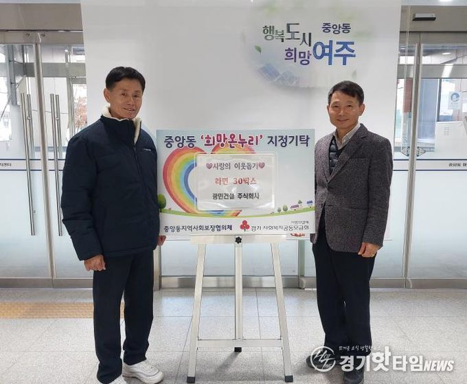 [경기핫타임뉴스=김형철 기자] 여주시 중앙동 소재 광민건설㈜은 지난 18일 동 행정복지센터를 방문해 관내 저소득 취약계층을 위한 라면 30박스를 기탁했다.