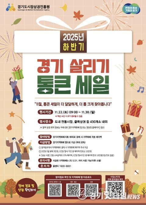[경기핫타임뉴스=김형철 기자] 부천시는 11월 22일부터 30일까지 관내 전통시장과 골목상권 30곳에서 ‘2025년 하반기 경기 살리기 통큰 세일’을 연다.