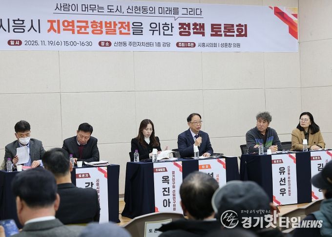 [경기핫타임뉴스=김삼영 기자] 경기 시흥시의회가 11월 19일 신현동 주민자치센터 1층 강당에서 ‘사람이 머무는 도시, 신현동의 미래를 그리다’를 주제로 지역균형발전 정책토론회를 개최했다.