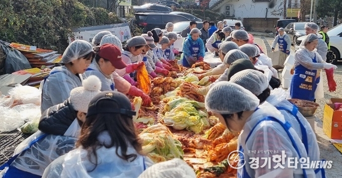 [경기핫타임뉴스=김삼영 기자] 아동·청소년 그리고 노인복지를 위해 봉사와 나눔을 실천하고 있는 ‘사단법인다음세대희망나눔’이 20일 안양시 동안구에 위치한 산마을베이커리 앞에서 관내 독거노인과 소외계층에게 전달할 김장김치 나눔행사를 진행했다.