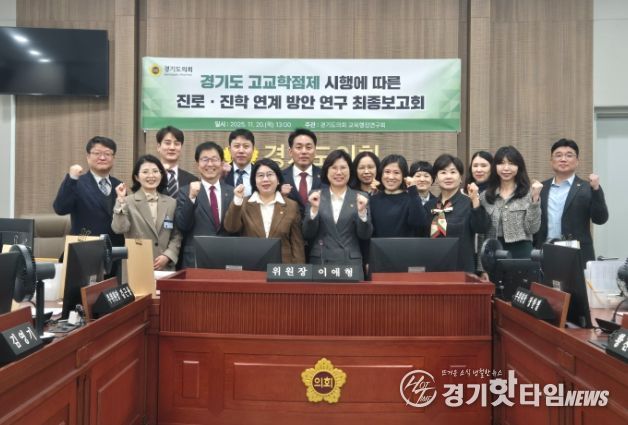 [경기핫타임뉴스=김삼영 기자] 경기도의회 교육행정위원회 소속 의원 연구단체인 ‘교육행정연구회(회장 이애형)’는 20일 교육행정위원회 회의실에서 정책연구과제인 ‘경기도 고교학점제 시행에 따른 진로·진학 연계 방안 연구’의 최종보고회를 개최했다.