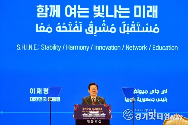 [경기핫타임뉴스=김삼영 기자] 이재명 대통령이 20일(현지시간) 이집트 카이로 대학을 방문해 '샤인(SHINE) 이니셔티브'로 명명된 중동 구상을 발표했다.