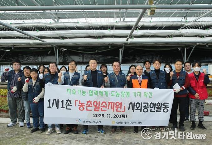 [경기핫타임뉴스=김삼영 기자] 오산도시공사는 지난 20일 NH농협중앙회 오산시지부, 오산농협과 함께 도농상생을 위한 ‘1사1촌 농촌 일손지원 봉사활동’을 성공적으로 마무리했다고 밝혔다.