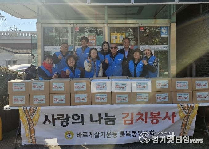 [경기핫타임뉴스=김삼영 기자] 평택시 통복동 바르게살기위원회는 지난 20일과 21일 이틀간 ‘사랑의 김장 나눔’ 행사를 개최하고 관내 취약계층에 김장 김치 150㎏을 전달했다.