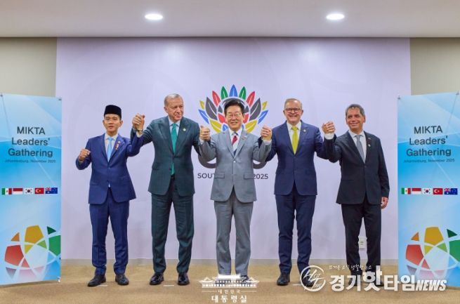 [경기핫타임뉴스=김삼영 기자] 주요 20개국(G20) 정상회의 참석을 위해 남아프리카공화국을 방문한 이재명 대통령은22일(현지시간) 오후 우리나라, 멕시코, 인도네시아, 튀르키예, 호주 5개국으로 구성된 믹타(MIKTA) 회원국 정상들과 회동했다.