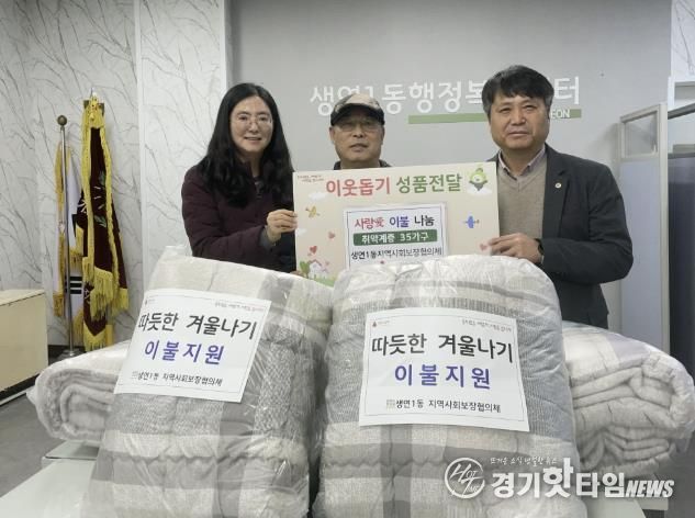[경기핫타임뉴스=김형철 기자] 생연1동 지역사회보장협의체는 지난 25일 갑작스레 추워진 날씨에 대비해 관내 저소득층 및 복지 사각지대 35가구에 따듯한 겨울 이불을 지원하고 안부를 확인하는 특화사업을 실시했다고 밝혔다.
