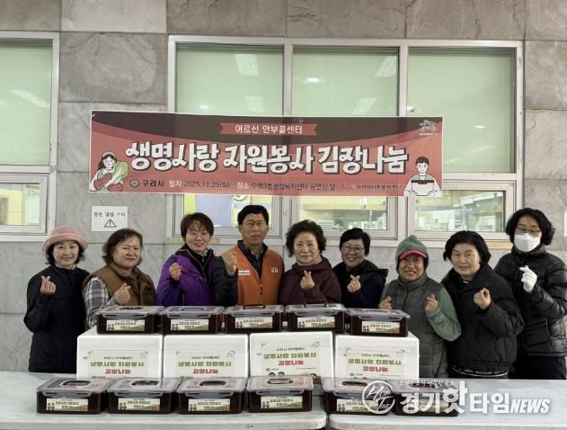 [경기핫타임뉴스=김형철 기자] 사단법인 구리시자원봉사센터는 11월 25일, 어르신 안부콜센터 자원봉사자 10여 명과 함께 취약계층의 따뜻한 겨울나기를 돕기 위한 ‘김장 나눔’ 활동을 진행했다고 밝혔다.