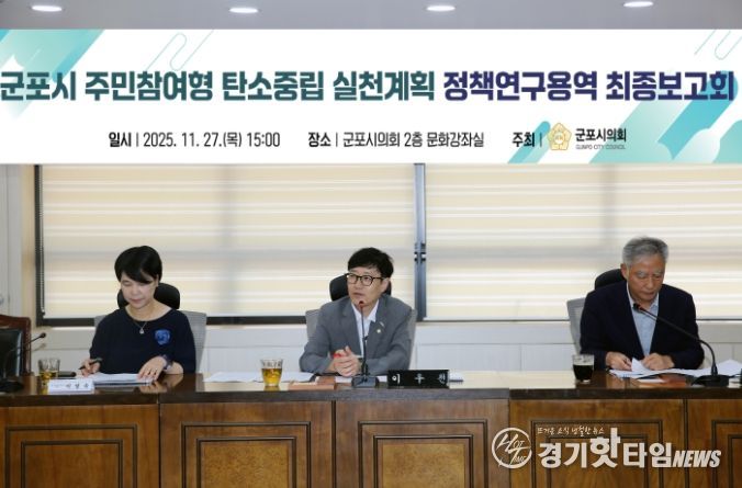 이번 최종보고회는 군포시의 탄소중립 이행을 한 단계 끌어올리는 기반이 됐으며, 연구결과는 향후 조례 개정 및 정책 설계에도 폭넓게 활용될 전망이다. 시민참여와 행정체계 개선이 결합된 실천 전략이 본격적으로 작동한다면, 군포시는 기후위기 시대에 더 지속가능하고 탄소중립에 가까운 도시로 도약할 수 있을 것으로 기대된다.