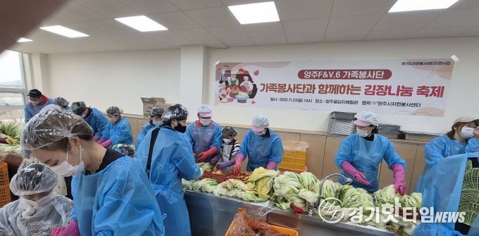 이번 봉사활동은 2025년 도민이 전하는 자원봉사2차 김장나눔 사업으로 선정된 6개 단체가“양주시 사랑의 김장나눔 릴레이”로 15일부터 경기북부영웅시대를 시작으로 16일 양주+인, 17일 양주상인회협동조합, 22일 아름다운회천사람들, 23일 둘이함께가족봉사단, 23일 양주F&V.6까지 200여명이 참여했고 10kg 김장김치 700여통을 관내 어려운 이웃들에게 배부했다.
