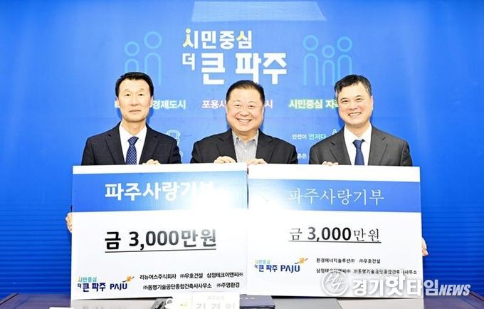 김경일 파주시장은 “매년 꾸준한 나눔으로 지역과 함께해 주시는 기업 여러분께 깊이 감사드린다”라며 “이번 성금이 연말 지역 곳곳에 따뜻한 온기를 전해 많은 이웃들에게 힘이 되길 바란다”라고 밝혔다.