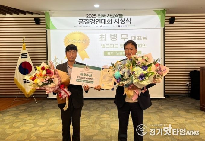 [경기핫타임뉴스=김형철 기자] 이천시 백사면에 소재한 벌크피드 영농조합법인이 2025년 전국 사료작물 품질경연대회에서 최우수상을 수상했다.