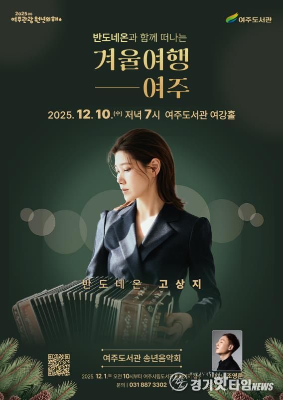 [경기핫타임뉴스=김형철 기자] 여주시 평생교육과 여주도서관은 오는 12월 10일 오후 7시, 여강홀에서 반도네오니스트 고상지와 피아니스트 조영훈이 함께하는 송년음악회를 개최한다.