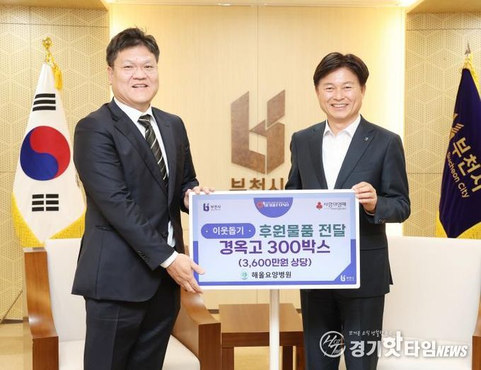 [경기핫타임뉴스=김형철 기자] 부천시는 지난 1일 해올요양병원에서 지역 취약 돌봄가구를 위해 3,600만 원 상당의 경옥고 300박스를 기탁했다고 2일 밝혔다.