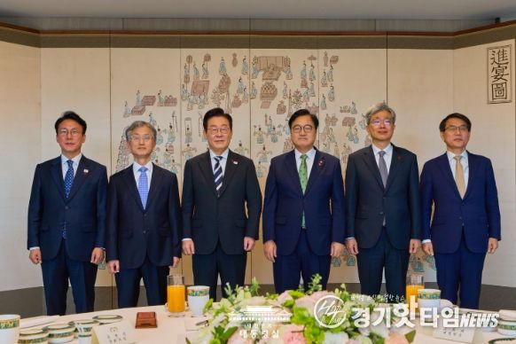 [경기핫타임뉴스=김삼영 기자] 3일 이재명 대통령과 5부 요인의 오찬은 1시간 40분 동안 화기애애한 분위기 속에 진행됐다.