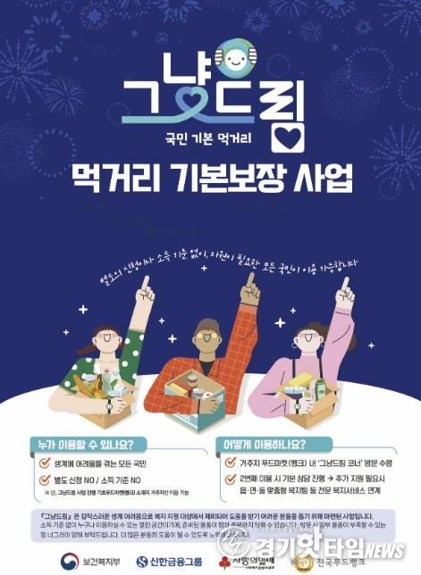 [경기핫타임뉴스=김형철 기자] 동두천시는 경제적 어려움을 겪는 시민 누구나 먹거리와 생필품을 지원받을 수 있는 ‘그냥드림(먹거리 기본보장) 시범사업’을 추진한다고 밝혔다.